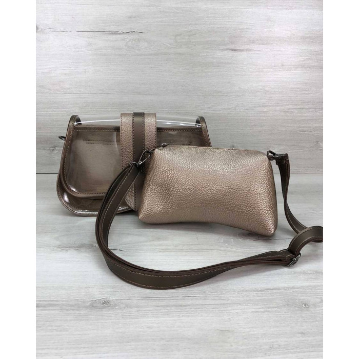Внутри сумки есть косметичка без подклада, которую можно носить как отдельную сумку.
