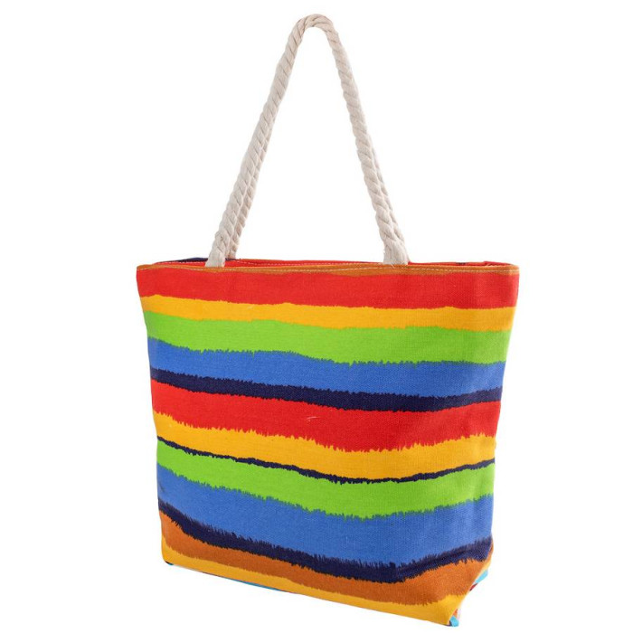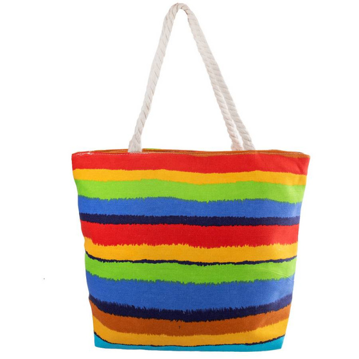 Размеры (X*Y*Z): 43 (замер сделан по верхней части, ширина по дну - 30 см)*34*13 см. Цвет: красный, желтый, синий, зеленый (полоска). Цвет фурнитуры: серебро. Материал изделия: плотный текстиль. Материал подклады: плотная ткань. Изделие имеет две ручки для переноса модели в руке или на плече. Их длина составляет 55 см, а высота от крайней точки ручки до сумки - 22 см. Количество основных отделений: 1. Внутри есть прорезной карман на молнии. Аксессуар пригоден для ношения в руке, на сгибе локтя, на плече. Сумка закрывается при помощи молнии. Документы формата А4 помещаются в аксессуар. Изделие упаковано в полиэтиленовый пакет. Страна происхождения ТМ Valiria Fashion, а также страна-производитель - Китай. Гарантия: 1 месяц.