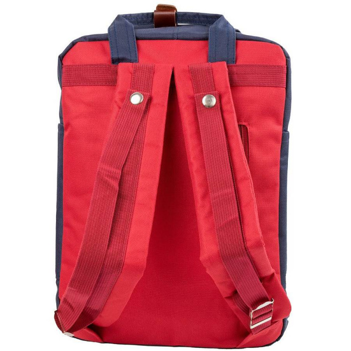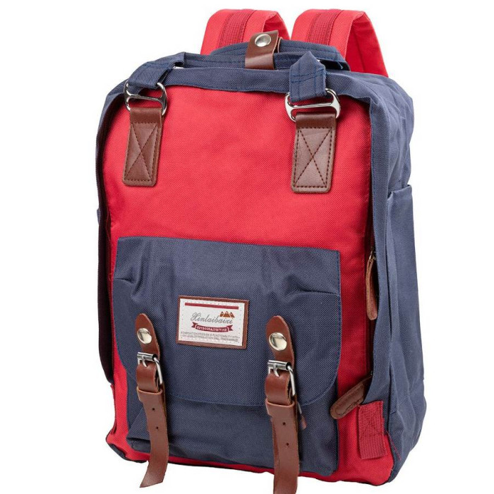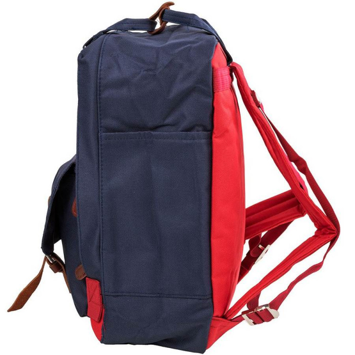 Интересный дизайн этого рюкзака проявляется особенно ярко в цветовой гамме и множестве вспомогательных элементов. Аксессуар похож на ученический ранец или часть экипировки для костюма в стиле милитари. Он отлично подходит для города, путешествий, прогулок. Красный и синий цвета дополняются коричневыми ремешками, ярко-серебристыми кнопками, пряжками, накладными деталями. Конструкция модели торговой марки VALIRIA FASHION интересна в нюансах: прямоугольная форма со скрытой под планкой молнией почти на лицевой стороне; кнопки на лямках для пристёгивания свободных концов регулирующих ремней; большое количество разнообразных карманов; две крепкие ручки, соединяющиеся между собой. Изделие удобно в обращении, вмещает бумаги формата А4. Купить женский рюкзак из полиэстера – крепкий, оригинальный, красивый – можно в магазине «OlaBags». Цена – выгодная.