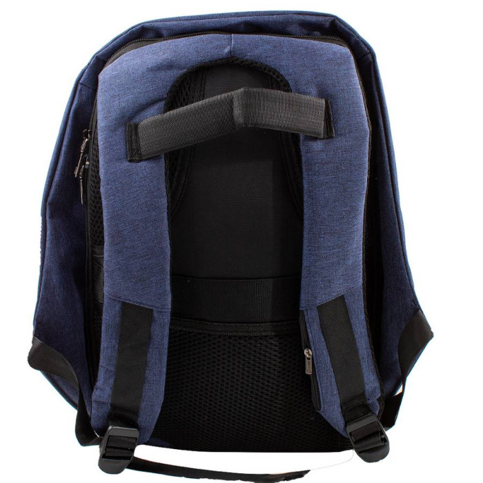 Внешние размеры рюкзака: 29*43*10 см. Объем: 15 л. Вес: 650 г. Материал: ткань. Цвет: синий, черный. Цвет фурнитуры: черное серебро. Тип конструкции: мягкий рюкзак. Количество основных отделений: 1. Внутри есть большой накладной карман для ноутбука, 3 других накладных кармана и 1 карман на молнии. Спинка рюкзака анатомическая, она выполнена с участками из поропласта, обтянутого сетчатым материалом 3D-airmash, который не препятствует свободной циркуляции воздуха. На спинке есть ремень для крепления рюкзака к ручке дорожного чемодана. Плечевые лямки имеют анатомическую форму. Они снабжены плотной подкладой из поропласта, их тыльная сторона выполнена из сетчатого материала 3D-airmash. Длина лямок может регулироваться при помощи пластиковых пряжек. На одной из лямок есть маленький карман на молнии. Изделие имеет удобную плотную ручку, при помощи которой аксессуар можно переносить в руке или повесить на крючок или вешалку. Рюкзак закрывается при помощи молнии, которая расположена около спинки изделия, поэтому открыть ее, когда рюкзак надет, невозможно. Модель можно использовать в качестве городского рюкзака, для активного отдыха, для недлительных поездок и походов выходного дня. Изделие упаковано в полиэтиленовый пакет. Документы формата А4 помещаются в рюкзак. Страна происхождения торговой марки VALIRIA FASHION и страна-производитель - Китай. Гарантия: 1 месяц.