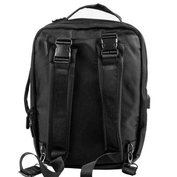 Внешние размеры рюкзака: 30 х 38 х 11. Объем без учета карманов: 13 л. Количество основных отделений: 2. Внутри есть 1 накладной карман для ноутбука (закрывается на шлейку на липучке), 2 накладных кармана и органайзер на 4 отделения. Материал: полиэстер. Материал подклады: ткань. Цвет: черный. Цвет фурнитуры: серебро. Гарантия: 1 месяц. На лицевой стороне расположен 1 карман на молнии. Рюкзак имеет USB-выход. Плечевые лямки имеют анатомическую форму. Они снабжены плотной подкладой из поропласта, а их тыльная сторона выполнена из сетки 3D airmesh, которая не препятствует свободной циркуляции воздуха. Длина лямок может регулироваться при помощи металлических пряжек. Лямки съемные – их можно спрятать в специальный карман на спинке рюкзака или отстегнуть полностью. На боку рюкзака есть ручка для переноса изделия в руке в качестве сумки. Рюкзак имеет плотную ручку сверху для того, чтобы переносить изделие в руке или повесить на крючок. Рюкзак закрывается при помощи молнии . Изделие упаковано в полиэтиленовый пакет. Документы формата А4 помещаются в рюкзак. Страна происхождения торговой марки VALIRIA FASHION и страна-производитель - Китай.