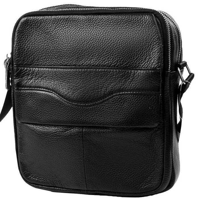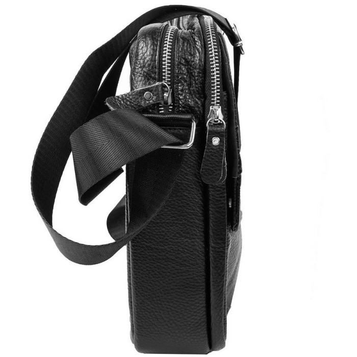 Размеры (X*Y*Z): 23 х 26 х 6,5 см. Материал: натуральная кожа. Цвет: черный. Цвет фурнитуры: серебро. Подклада изготовлена из ткани. Гарантия: 1 месяц. Количество основных отделений: 2. Аксессуар имеет внутри один прорезной карман на молнии. На лицевой стороне сумки есть накладной карман, который закрывается клапаном на двух магнитных кнопках. На тыльной стороне сумки есть прорезной карман на молнии. Сумка имеет несъемный плечевой ремень регулируемой длины (максимально – 147 см). Аксессуар можно носить на плече, через плечо. Модель закрывается с помощью молнии. Документы формата А4 не помещаются в сумку. Изделие упаковано в полиэтиленовый пакет. Страна происхождения торговой марки VALIRIA FASHION и страна-производитель - Китай.