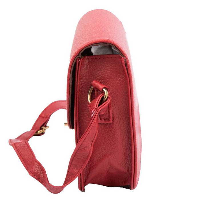 Размеры (X*Y*Z): 20 х 15 х 5.5 см. Материал изделия: кожзам. Материал подклады: плотная ткань. Цвет: красный. Цвет фурнитуры: золото. Гарантия: 1 месяц. Количество основных отделений: 1. Внутри есть 2 кармана, один из которых на молнии. Изделие имеет несъемный плечевой ремень. Длина ремня регулируется до 126 см. Аксессуар пригоден для ношения в руке, на плече, через плечо. Сумка закрывается при помощи механической застежки. Документы формата А4 не помещаются в аксессуар. Изделие упаковано в полиэтиленовый пакет. Страна происхождения торговой марки VALIRIA FASHION и страна-производитель - Китай.