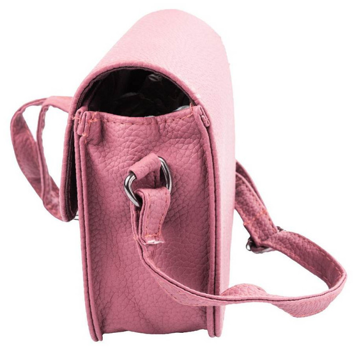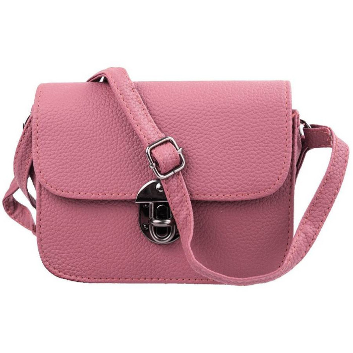 Размеры (X*Y*Z): 18 х 14 х 6 см. Материал изделия: кожзам. Материал подклады: плотная ткань. Цвет: розовый. Цвет фурнитуры: черное серебро. Гарантия: 1 месяц. Количество основных отделений: 1. Внутри есть 2 кармана, один из которых на молнии. Изделие имеет несъемный плечевой ремень. Длина ремня регулируется до 126 см. Аксессуар пригоден для ношения в руке, на плече, через плечо. Сумка закрывается при помощи механической застежки. Документы формата А4 не помещаются в аксессуар. Изделие упаковано в полиэтиленовый пакет. Страна происхождения торговой марки VALIRIA FASHION и страна-производитель - Китай.