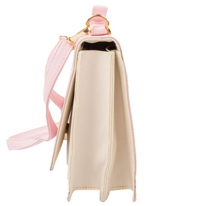 Размеры (X*Y*Z): 20 х 18 х 9 см. Материал изделия: кожзам. Материал подклады: плотная ткань. Цвет: розовый, бежевый. Цвет фурнитуры: золото. Гарантия: 1 месяц. Количество основных отделений: 2. Изделие имеет съемный плечевой ремень. Длина ремня регулируется до 127 см. Имеет несъемную ручку для переноса в руке. Аксессуар пригоден для ношения в руке, на плече, через плечо. Сумка закрывается при помощи магнитной застежки. Документы формата А4 не помещаются в аксессуар. Изделие упаковано в полиэтиленовый пакет. Страна происхождения торговой марки VALIRIA FASHION и страна-производитель - Китай.