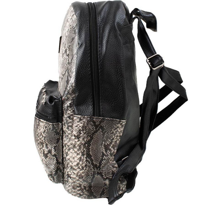 Внешние размеры рюкзака: 26 (замер по дну, вверху рюкзак более узкий) х 34 х 12. Количество основных отделений: 1. Внутри есть 1 прорезной карман на молнии. Материал: кожзам. Материал подкладки: ткань. Цвет: черный, серый под змею. Цвет фурнитуры: черное серебро. Гарантия: 1 месяц. На лицевой стороне расположен 1 накладной карман на молнии. Рюкзак имеет ручку-петлю для того, чтобы переносить изделие в руке или повесить на крючок. Рюкзак закрывается при помощи молнии . Изделие упаковано в полиэтиленовый пакет. Документы формата А4 не помещаются в рюкзак. Страна происхождения торговой марки VALIRIA FASHION и страна-производитель - Китай.
