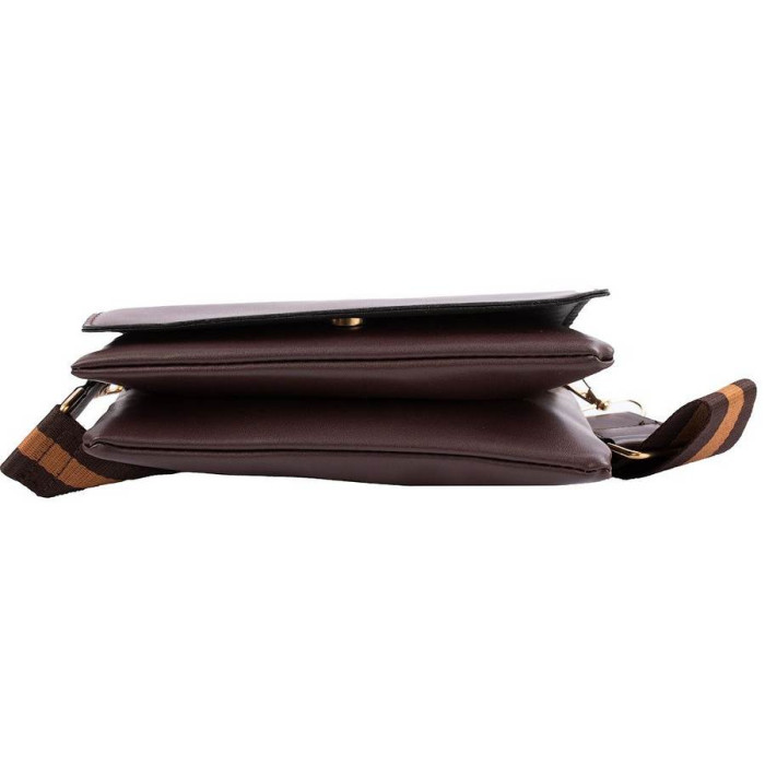 Размеры (X*Y*Z): 21 х 16 х 3 см. Материал изделия: кожзам. Материал подклады: плотная ткань. Цвет: коричневый. Цвет фурнитуры: золото. Гарантия: 1 месяц. Количество основных отделений: 2. Изделие имеет съемный плечевой ремень. Длина ремня регулируется до 120 см. Аксессуар пригоден для ношения в руке, на плече, через плечо. Сумка закрывается при помощи магнитной застежки. Документы формата А4 не помещаются в аксессуар. Изделие упаковано в полиэтиленовый пакет. Страна происхождения торговой марки VALIRIA FASHION и страна-производитель - Китай.