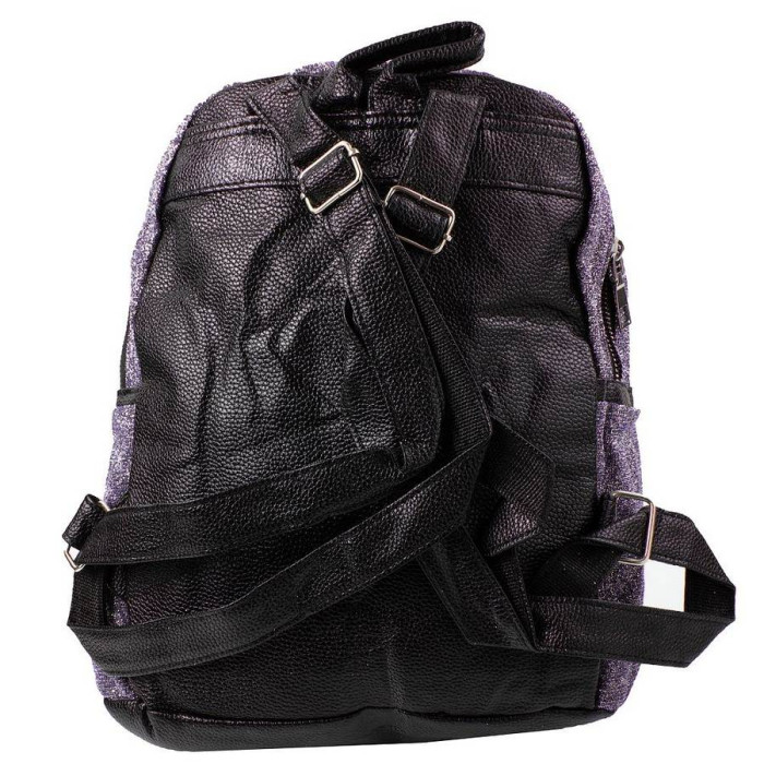 Внешние размеры рюкзака: 23 (по спинке) х 29 х 13. Количество основных отделений: 1. Внутри есть 1 большой накладной карман. Материал: ткань, кожзам. Материал подкладки: ткань. Цвет: синий с фиолетовым отливом и блестками. Цвет фурнитуры: серебро. Гарантия: 1 месяц. На лицевой стороне расположен 1 накладной карман на молнии. У рюкзака есть 2 боковых кармана. Рюкзак имеет ручку-петлю для того, чтобы переносить изделие в руке или повесить на крючок. Рюкзак закрывается при помощи молнии . Изделие упаковано в полиэтиленовый пакет. Документы формата А4 не помещаются в рюкзак. Страна происхождения торговой марки VALIRIA FASHION и страна-производитель - Китай.