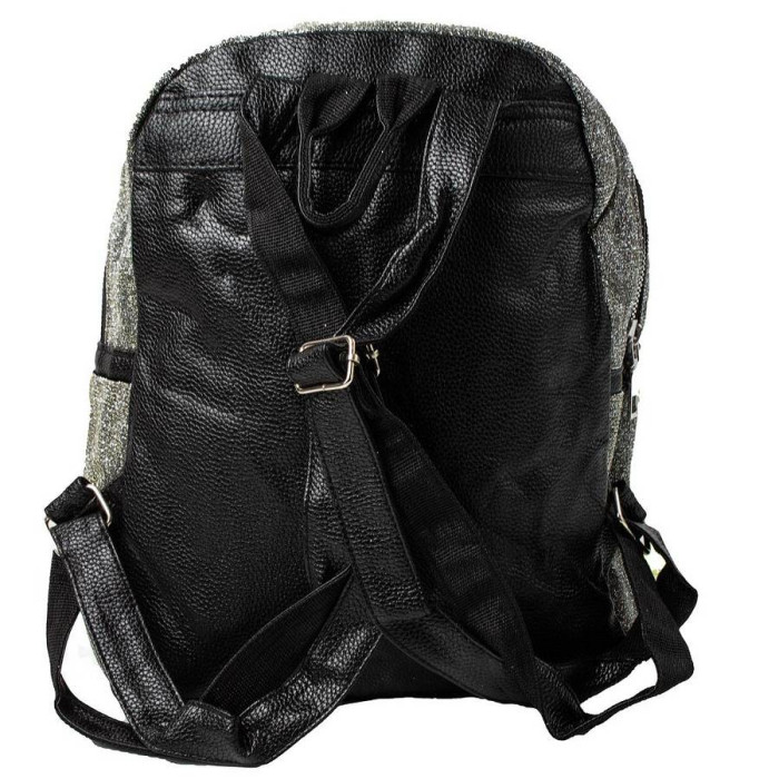 Внешние размеры рюкзака: 23 (по спинке) х 29 х 13. Количество основных отделений: 1. Внутри есть 1 большой накладной карман. Материал: ткань, кожзам. Материал подкладки: ткань. Цвет: серебряный с блестками. Цвет фурнитуры: серебро. Гарантия: 1 месяц. На лицевой стороне расположен 1 накладной карман на молнии. У рюкзака есть 2 боковых кармана. Рюкзак имеет ручку-петлю для того, чтобы переносить изделие в руке или повесить на крючок. Рюкзак закрывается при помощи молнии . Изделие упаковано в полиэтиленовый пакет. Документы формата А4 не помещаются в рюкзак. Страна происхождения торговой марки VALIRIA FASHION и страна-производитель - Китай.