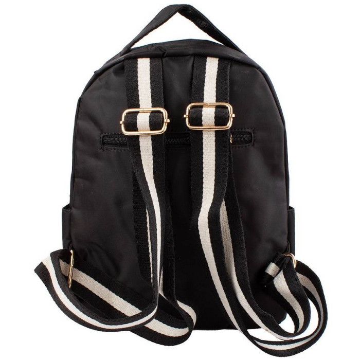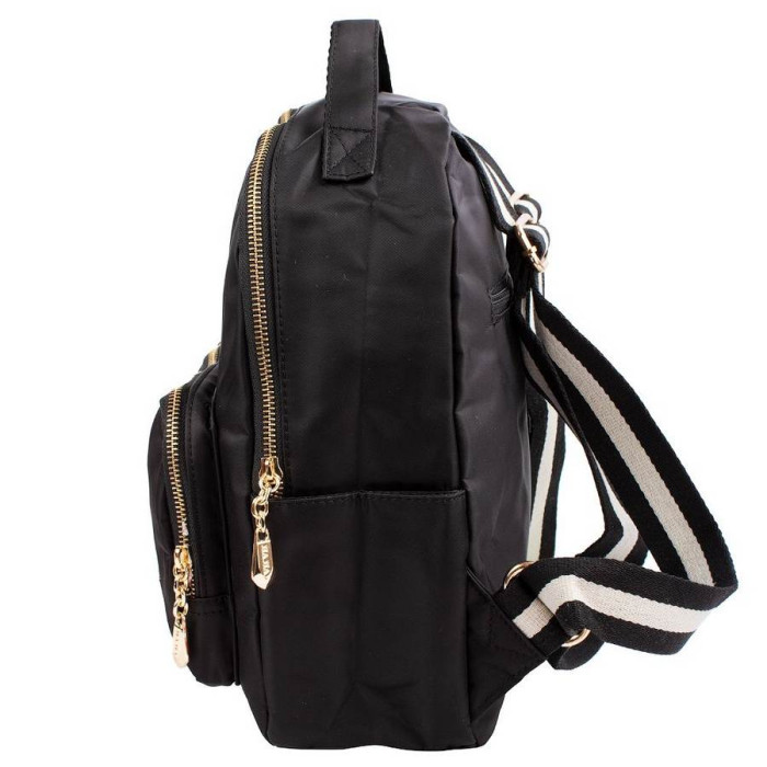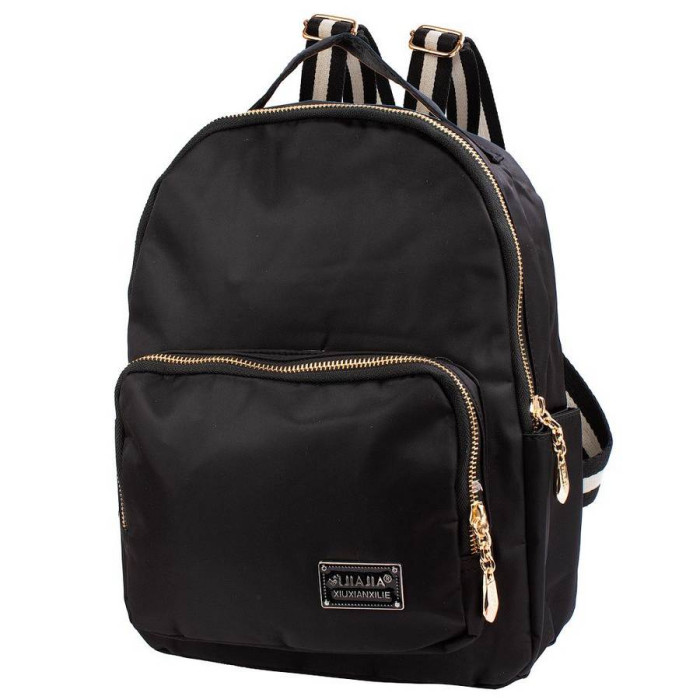 Внешние размеры рюкзака: 25 х 32 х 15. Материал: ткань. Материал подкладки: ткань. Цвет: черный. Цвет фурнитуры: золото. Гарантия: 1 месяц. Количество основных отделений: 1. Внутри есть 1 прорезной карман на молнии и 3 накладных кармана. На лицевой стороне расположен 1 карман на молнии. На тыльной стороне расположен 1 карман на молнии. У рюкзака есть 2 боковых кармана. Рюкзак имеет удобную ручку для того, чтобы переносить изделие в руке или повесить на крючок. Длину лямок можно регулировать при помощи металлических пряжек. Рюкзак закрывается при помощи молнии. Изделие упаковано в полиэтиленовый пакет. Документы формата А4 не помещаются в рюкзак. Страна происхождения торговой марки VALIRIA FASHION и страна-производитель - Китай.