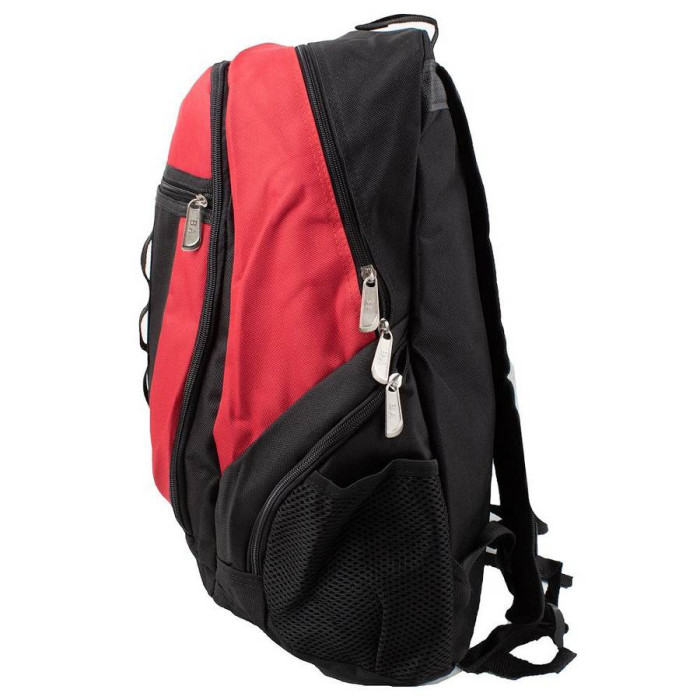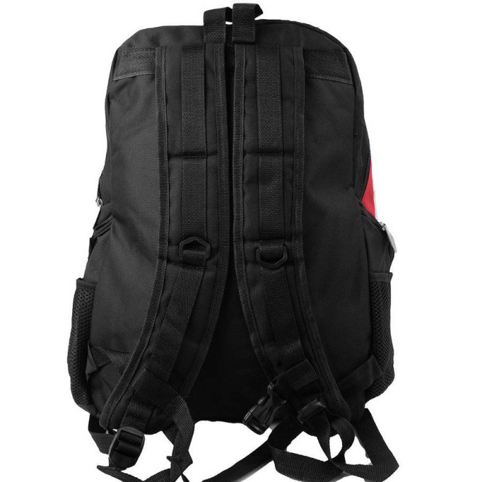 Внешние размеры рюкзака: 35 х 48 х 18. Объем без учета карманов: 30 л. Количество основных отделений: 2. Внутри есть 1 большой накладной карман. Материал: ткань. Материал подкладки: ткань. Цвет: красный, черный. Цвет фурнитуры: серебро. Гарантия: 1 месяц. На лицевой стороне расположен 1 большой прорезной карман. У рюкзака есть 2 боковых кармана из сетки и 2 боковых кармана на молнии. Рюкзак имеет удобную тканевую ручку для того, чтобы переносить изделие в руке или повесить на крючок. Тыльная сторона лямок рюкзака выполнена из поропласта, обтянутого сетчатым материалом 3D-airmesh, который не препятствует свободной циркуляции воздуха. Длину лямок можно регулировать при помощи пластиковых пряжек. Лямки снабжены ремешком, который можно для удобства застегнуть на груди. Рюкзак закрывается при помощи молнии. Изделие упаковано в полиэтиленовый пакет. Документы формата А4 помещаются в рюкзак. Страна происхождения торговой марки VALIRIA FASHION и страна-производитель - Китай.