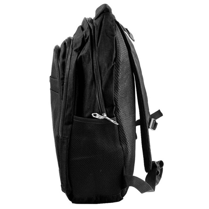 Внешние размеры рюкзака: 30 х 44 х 13 см. Объем без учета карманов: 17 л. Вес: 465 г. Материал: ткань. Цвет: черный. Цвет фурнитуры: серебро. Количество основных отделений: 3. Внутри есть накладной карман. Рюкзак имеет боковые карманы из сетки. На лицевой стороне есть карман на молнии. Плечевые лямки снабжены плотной подкладой из поропласта, их тыльная сторона выполнена из сетчатого материала 3D airmesh, который не препятствует свободной циркуляции воздуха. Спинка рюкзака уплотнена прослойкой из пеноматериала. Изделие имеет плотную петлю, при помощи которой аксессуар можно переносить в руке или повесить на крючок или вешалку, а также удобную мягкую ручку. Рюкзак закрывается при помощи молнии. Изделие упаковано в полиэтиленовый пакет. Документы формата А4 помещаются в рюкзак. Страна происхождения торговой марки VALIRIA FASHION и страна-производитель - Китай. Гарантия: 1 месяц.