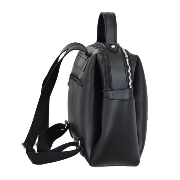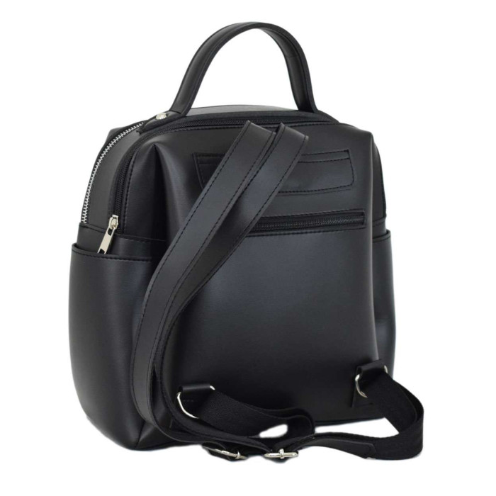 Изделие изготовлено из качественного кожзаменителя, подкладка - текстильный материал. Внутри множество дополнительных карманов, удобных и необходимых в использовании. Сзади рюкзака есть вертикальный удобный карман для мелочей.
