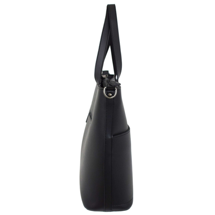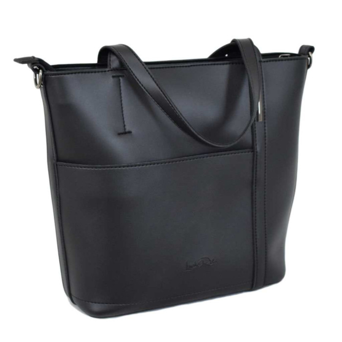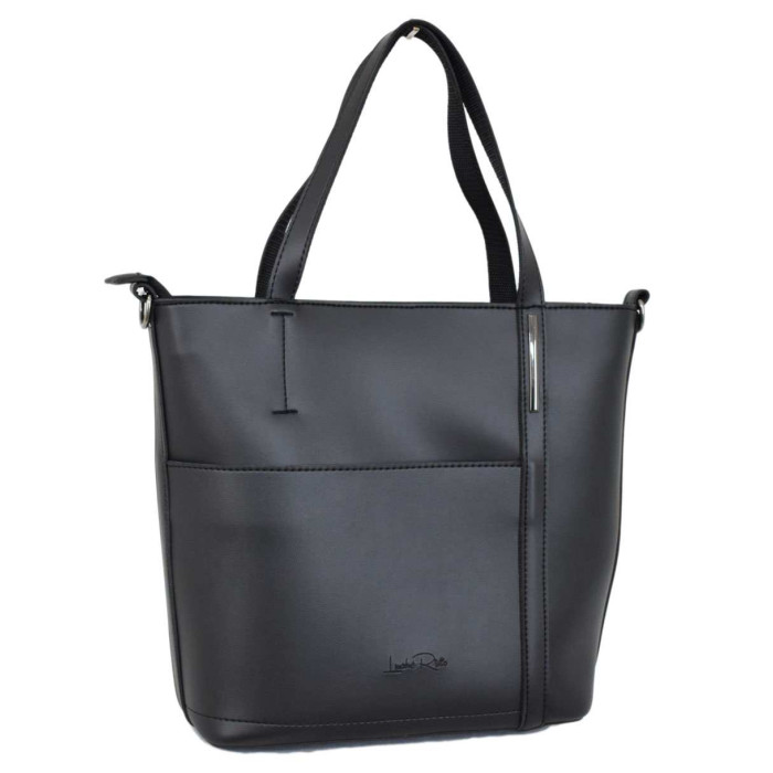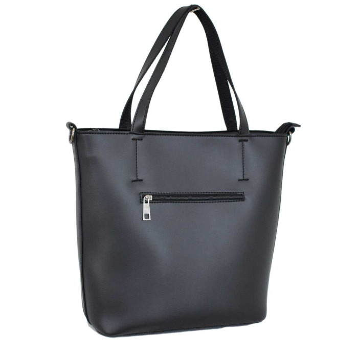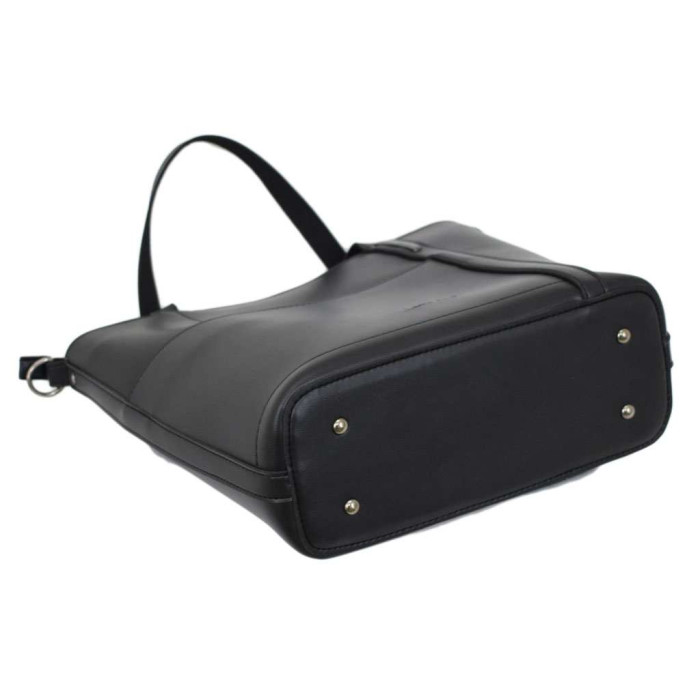 Сумка, с простым кроем и минимальным декором, выполнена из кожзаменителя высокого качества, чтобы ее использование было максимально длительным и приятным. Сумочка имеет две ручки, которые рассчитаны на комфортную транспортировку как в руке так и на локте. Также есть длинный ремешок для ношения сумочки на плече, который можно регулировать и по желанию отстегнуть с помощью карабинов. Задняя стенка оснащена врезным карманом на застежке. На дне установлены металлические ножки. Все изделие закрывается на молнию.