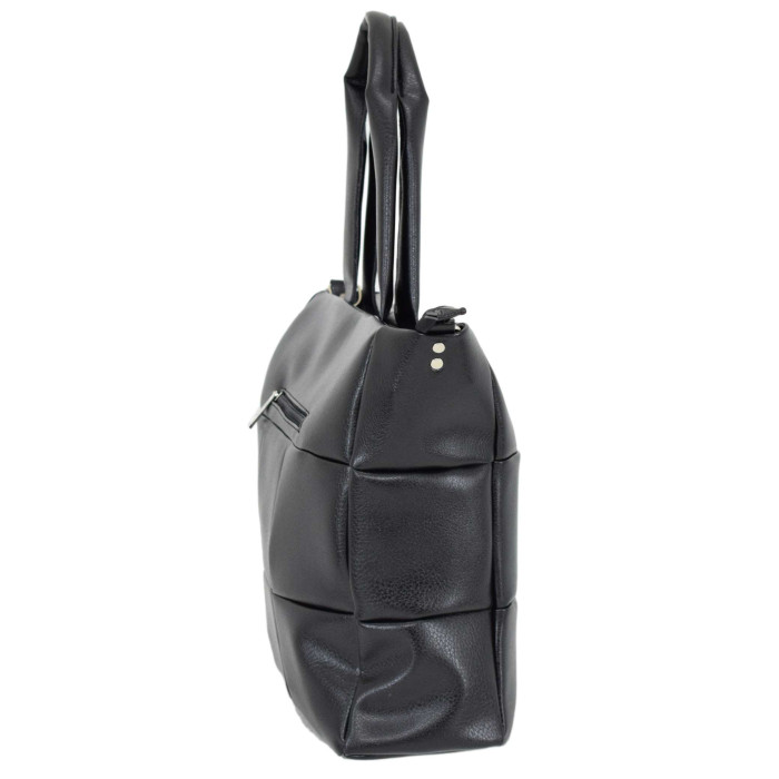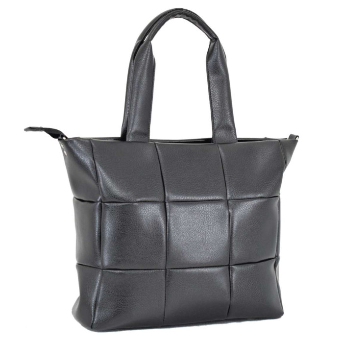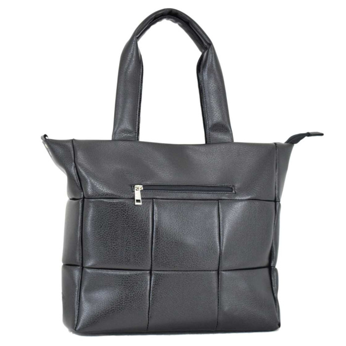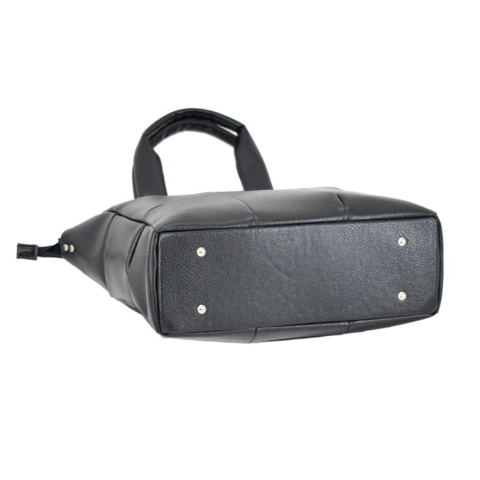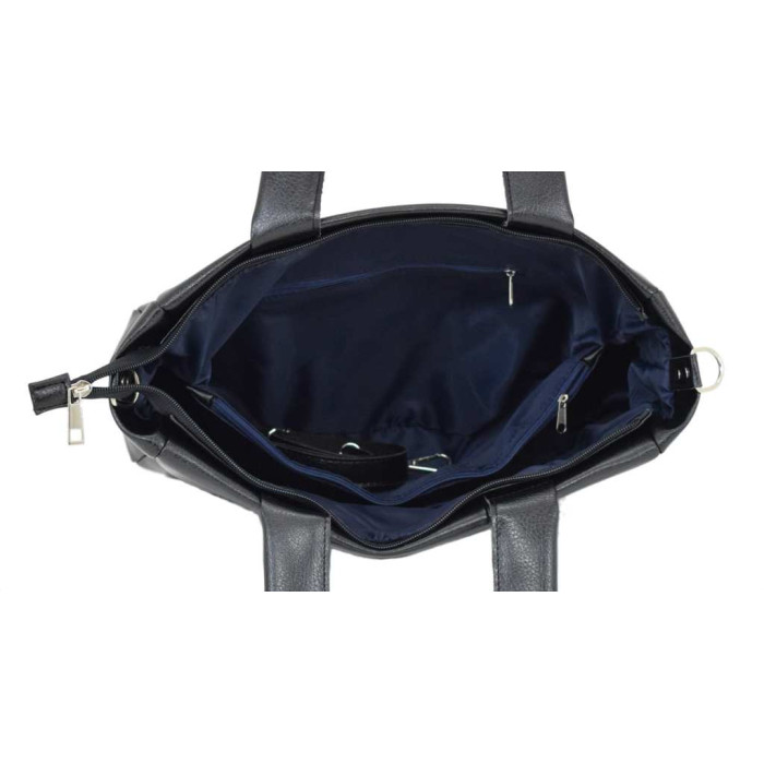 Сумка, с простым кроем и минимальным декором, выполнена из кожзаменителя высокого качества, чтобы ее использование было максимально длительным и приятным. Сумочка имеет две ручки, которые рассчитаны на комфортную транспортировку как в руке так и на локте. Также есть длинный ремешок для ношения сумочки на плече, который можно регулировать и по желанию отстегнуть с помощью карабинов. Задняя стенка оснащена врезным карманом на застежке. На дне установлены металлические ножки. Все изделие закрывается на молнию.