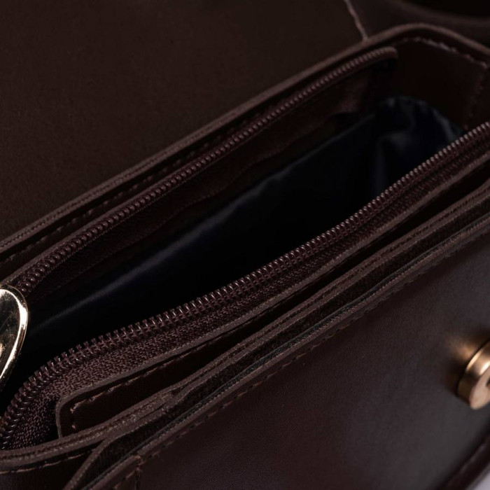 Стильная женская сумочка изготовлена ​​из высококачественного кожзаменителя и качественной фурнитуры в цвете - никель. Одно отделение удобно разместит большой кошелек, мобильный телефон и необходимые мелочи. Внутри использована надежная текстильная подкладка, где также расположены дополнительные карманы, один из которых на застежке. На задней внешний стенке находится вместительный врезной карман на молнии.