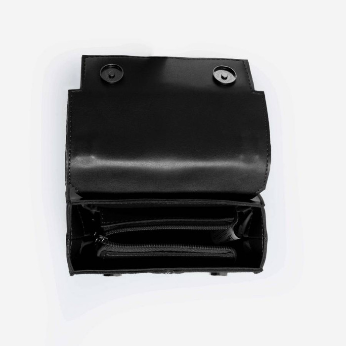 Все изделие закрывается на молнию, которая накрывается клапаном с магнитной кнопкой. Сумочка имеет длинный ремешок, который можно отрегулировать под нужный размер, для легкой транспортировки через плечо.