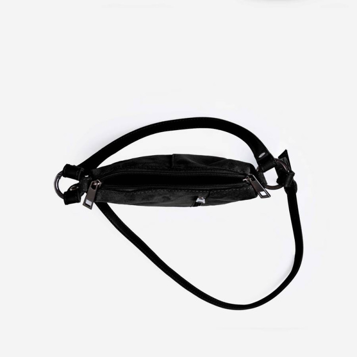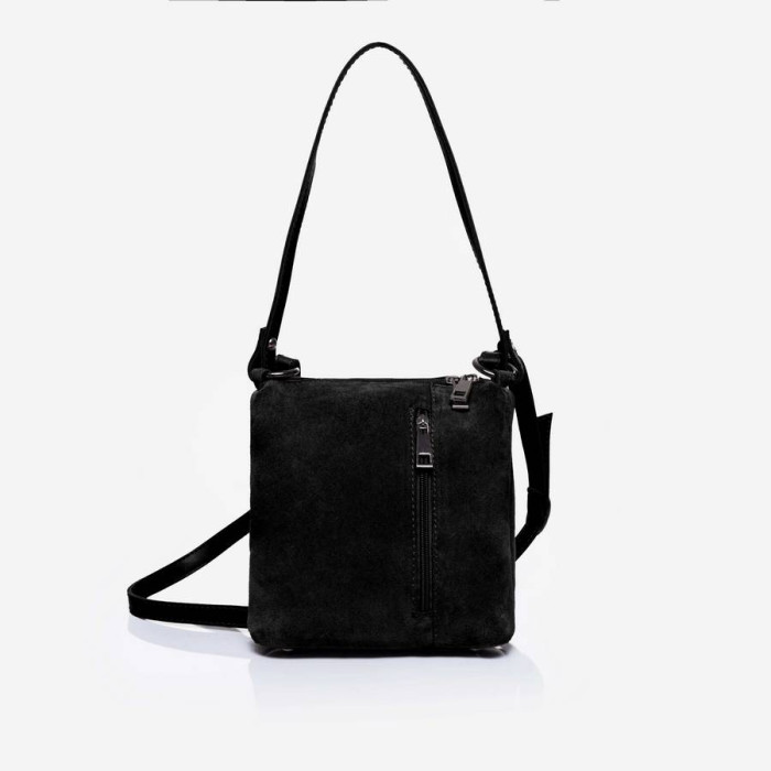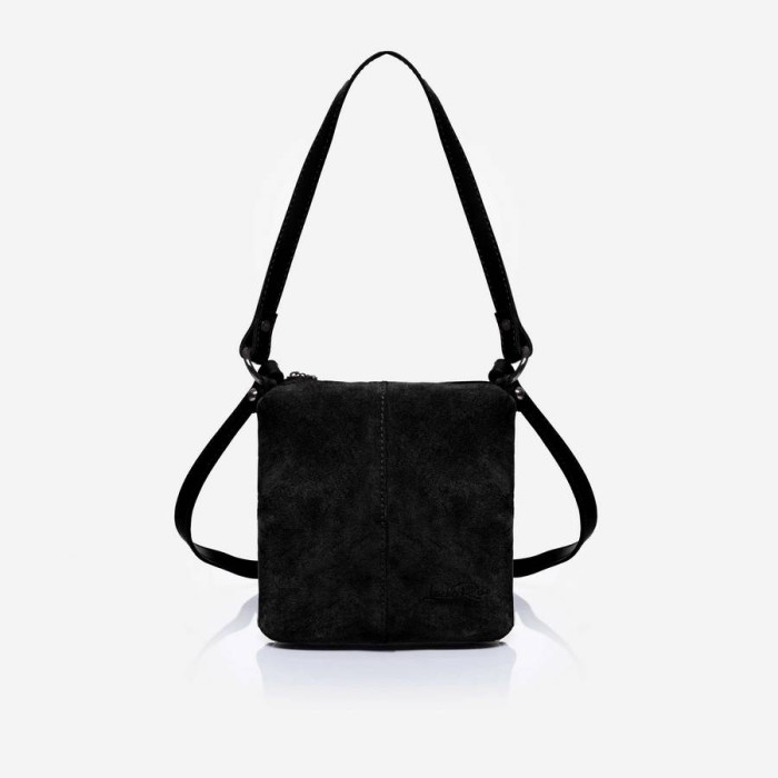 Кросс-боди модель изготовлена ​​из кожзаменителя высокого качества и натурального замша. Сумочка небольших размеров на одно отделение, но очень вместительная. Не плоская и имеет уплотненное дно на металлических ножках, хорошо сохраняет форму и предотвращает повреждения. Имеется одна короткая ручка и один длинный регулируемый плечевой ремень, каждая из которых в отдельности крепится надежными застежками-карабинами к металлическим полукольцам, что позволяет периодически менять ручки в зависимости от потребностей. Хорошим дополнением станут боковые функциональные карманы.