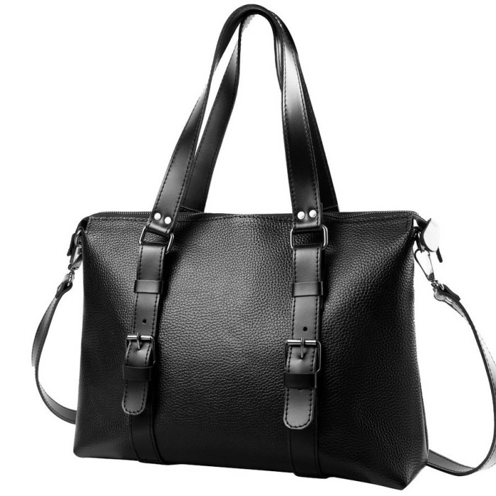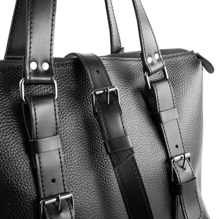 Количество основных отделений: 2. Сумка имеет прорезной карман на молнии. Изделие имеет съемный плечевой ремень. Длина ремня регулируется при помощи металлической пряжки (максимально - 122 см). Аксессуар пригоден для ношения в руке, на плече, через плечо. Сумка декорирована пряжками. Материал подклады: плотная ткань. Материал изделия: кожа. Цвет: черный. Цвет фурнитуры: серебро. Размеры (X*Y*Z): 44*33*8 см. Сумка закрывается при помощи молнии. В сумку помещаются документы А4. Изделие упаковано в полиэтиленовый пакет. Страна происхождения ТМ ETERNO, а также страна-производитель - Украина. Гарантия: 3 месяца.