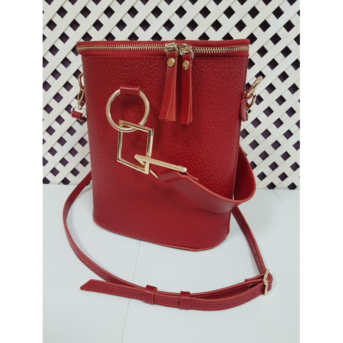Сумка женская "Болеро-классик" натуральная кожа, красная "Жемчуг"