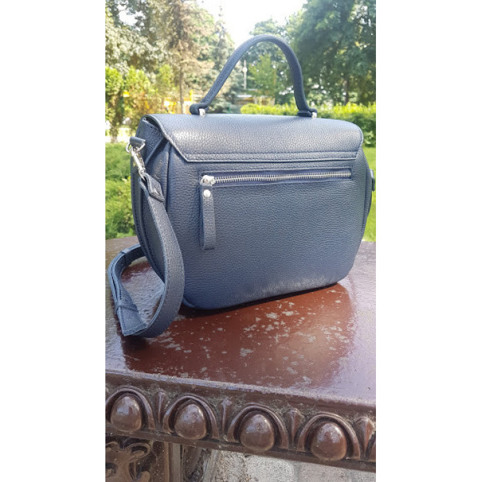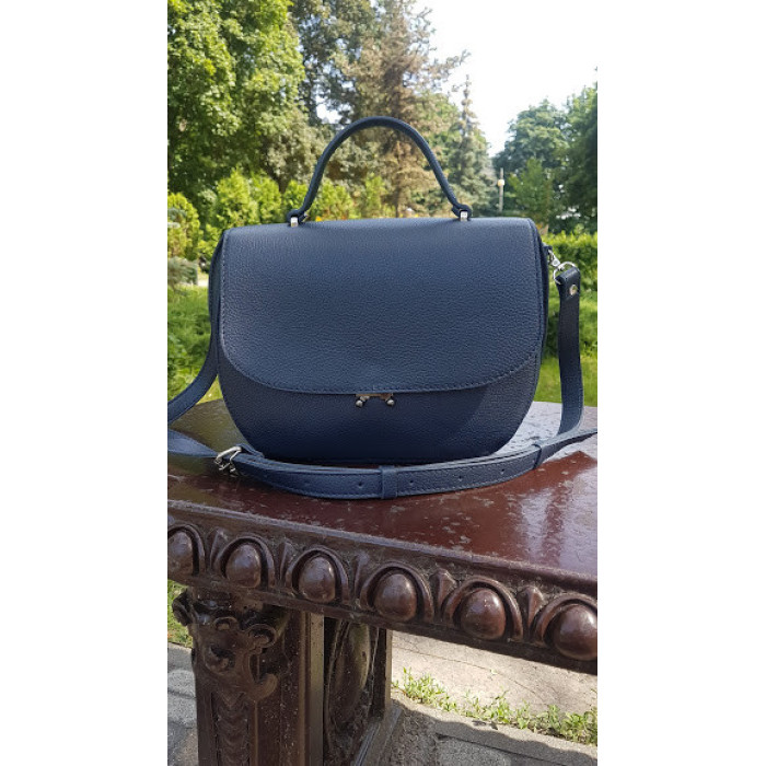 Стильная сумочка "Луна" изготовлена из натуральной кожи. Плечевой ремень двойной, регулируется. На обратной стороне имеется карман на молнии. Внутри сумочка на подкладке с карманом на молнии и с двумя открытыми карманами.