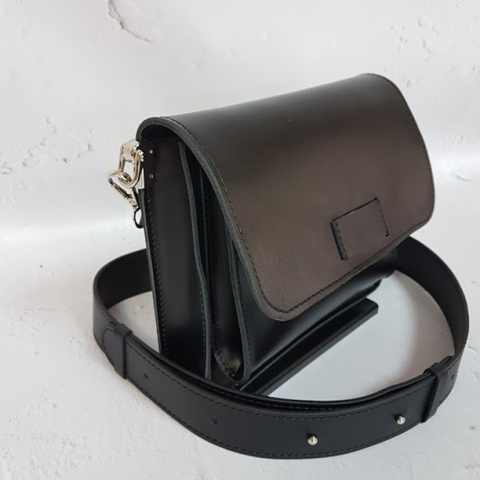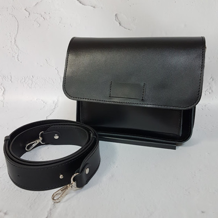Поясная сумка с дополнительным плечевым ремнем, который крепится с помощью карабинов. Изготовлена из натуральной кожи, закрывается на скрытый магнит, имеет два отделения и потайной внутренний карман на молнии.