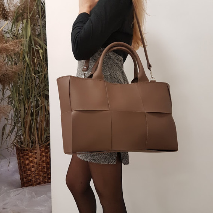 Очень вместительная и практичная сумка, станет неотъемлемой частью гардероба деловой и модной девушки! В нее идеально поместятся документы формата А-4. Эту сумку можно носить как на плече, так и в руке. Сумка на подкладке, внутри имеются карман на молнии и открытый карман. Плечевой ремень на карабинах.