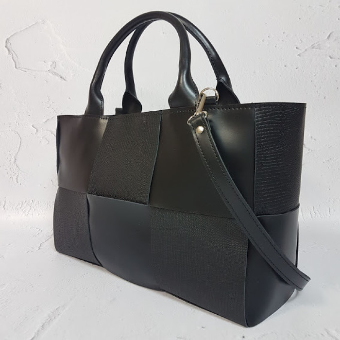 Сумка женская "Вега" натуральная кожа, черная с тиснением под рептилию