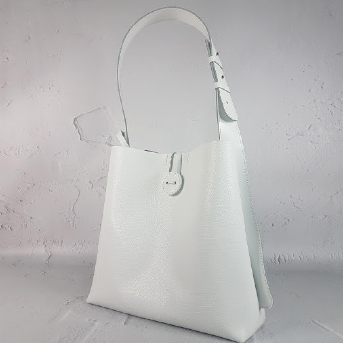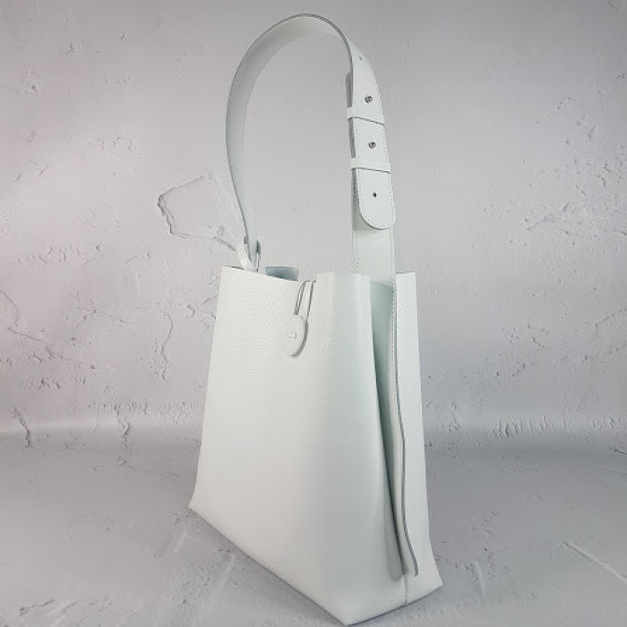 Вместительная сумка из натуральной кожи, внутри специальное отделение - футляр с карманом на молнии, которое крепится к сумке с помощью кожаного ремешка. Застегивается на декоративную пуговицу. Длина ремня регулируется.