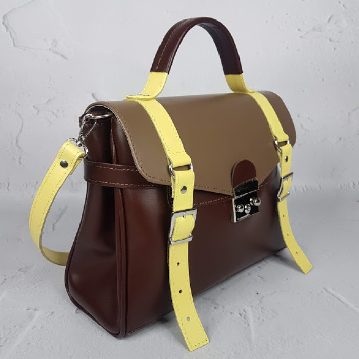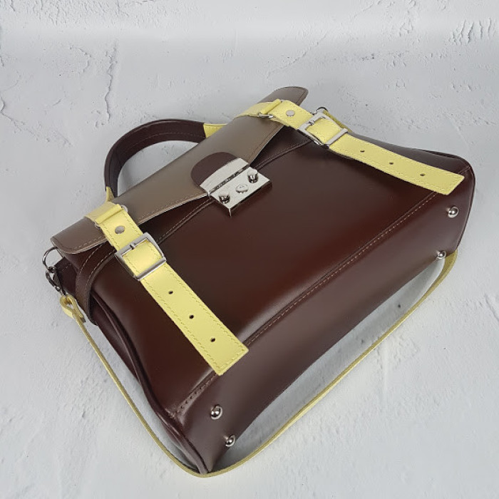 Сумка-саквояж женская "Винтаж" натуральная кожа, коньячная / капучино