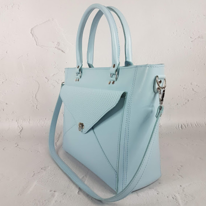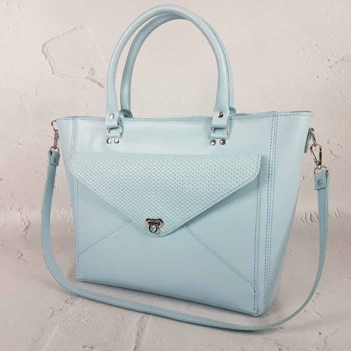 Сумка на подкладке, внутри есть карман на молнии. Плечевой ремень на карабинах. На лицевой стороне находится карман-конверт на поворотном замке.