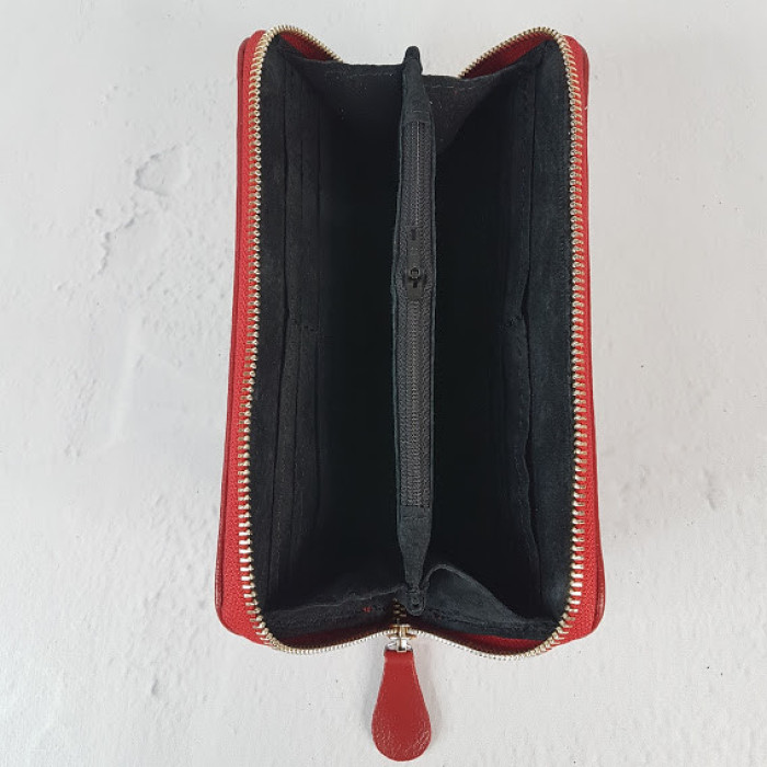 Портмоне на молнии, изготовлено из натуральной кожи. Внутри есть 12 отделений для карт и отделение на молнии для мелочи.