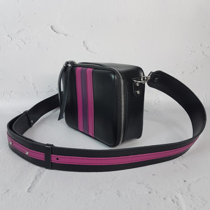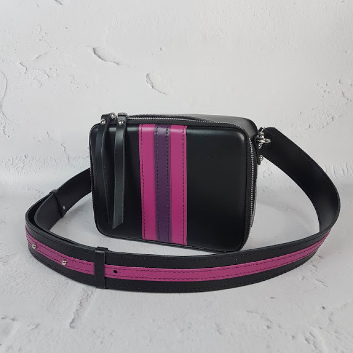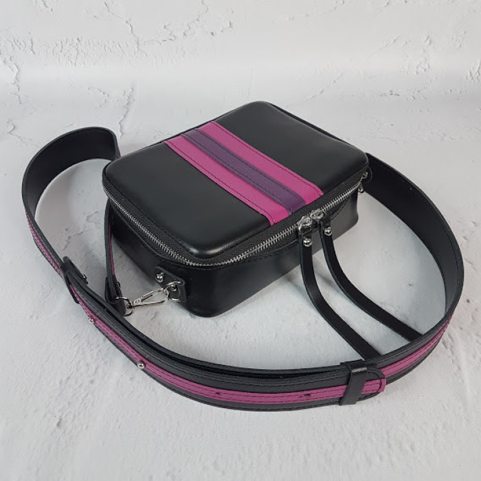 Очень оригинальная сумочка из натуральной кожи "КВАДРО". Она отлично держит форму и поместит в себя все необходимое, что надо взять с собой! Внутри на подкладке и имеет небольшой внутренний кармашек. Плечевой ремень регулируется.