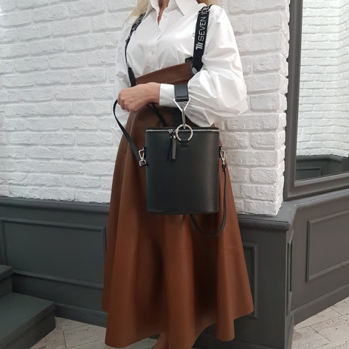 Очень оригинальная и вместительная сумочка "Болеро" изготовлена из натуральной кожи. Она хорошо держит форму, имеет плечевой ремень с регулировкой, возможно носить сумочку как на плече, так и в руке. Внутри на подкладке, имеются два открытых кармана, а также карман на молнии. Возможно выбрать фурнитуру: серебро/золото и цвет подкладки.