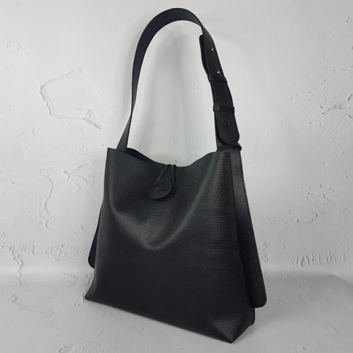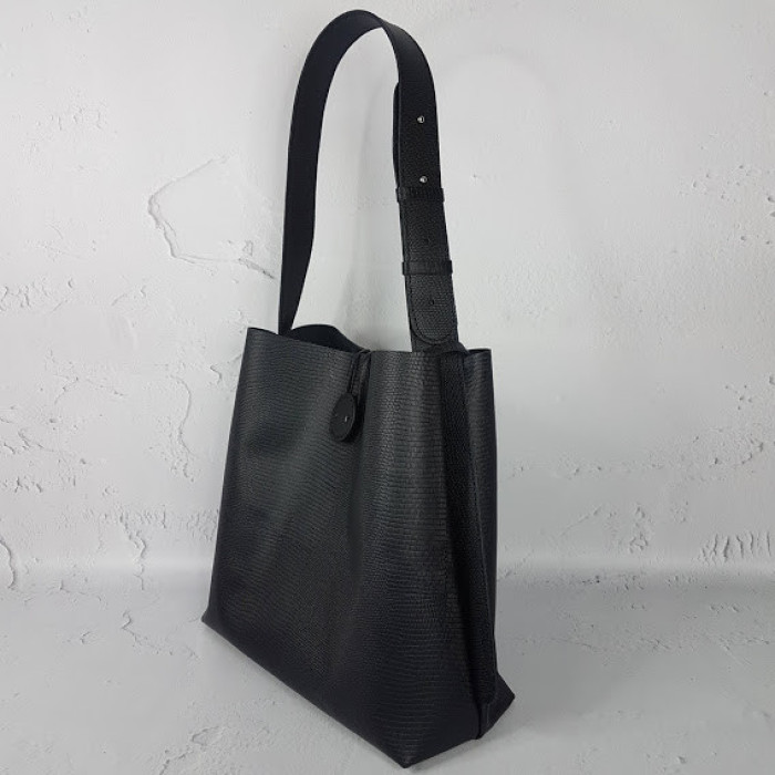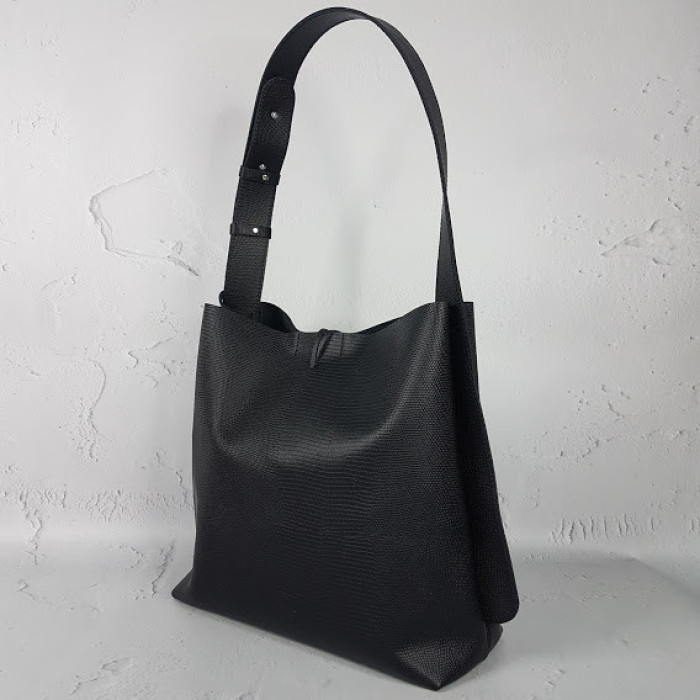 Сумка-шопер "Барбара" натуральная кожа, черная матовая под рептилию