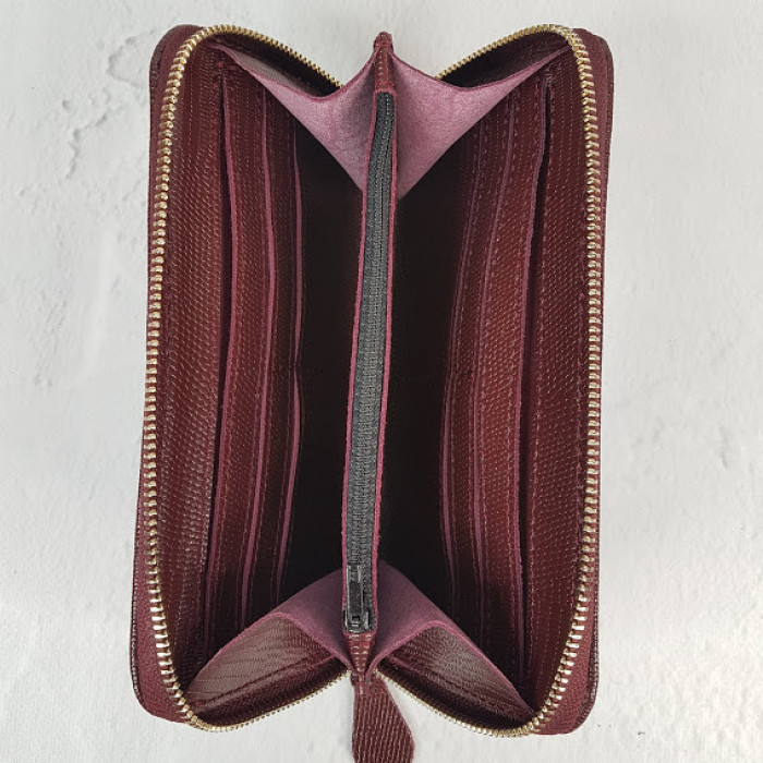 Портмоне на молнии, изготовлено из натуральной кожи. Внутри есть 12 отделений для карт и отделение на молнии для мелочи.