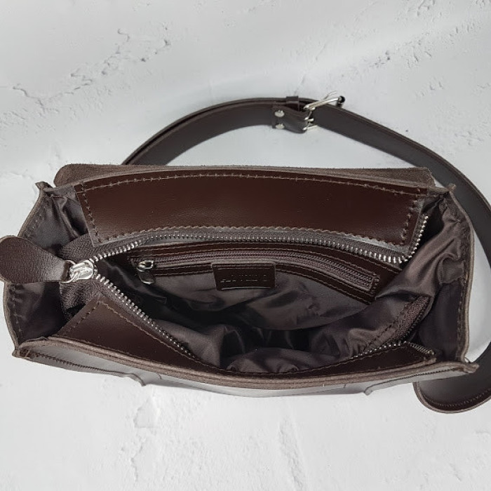 Сумка Бронкс изготовлена из высококачественной натуральной кожи. Вмещает документы А-5 формата. Закрывается на молнию и на клапан, который на скрытых магнитах. Имеет широкий кожаный плечевой ремень, длина которого регулируется. Внутри на подкладке, есть боковой карман на молнии. Снаружи сумки - карман на молнии, а спереди - один открытый карман.