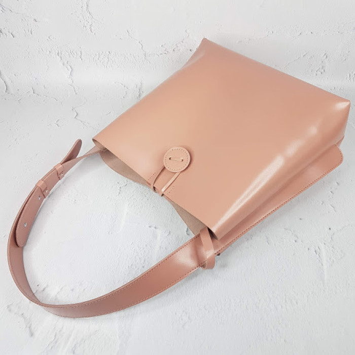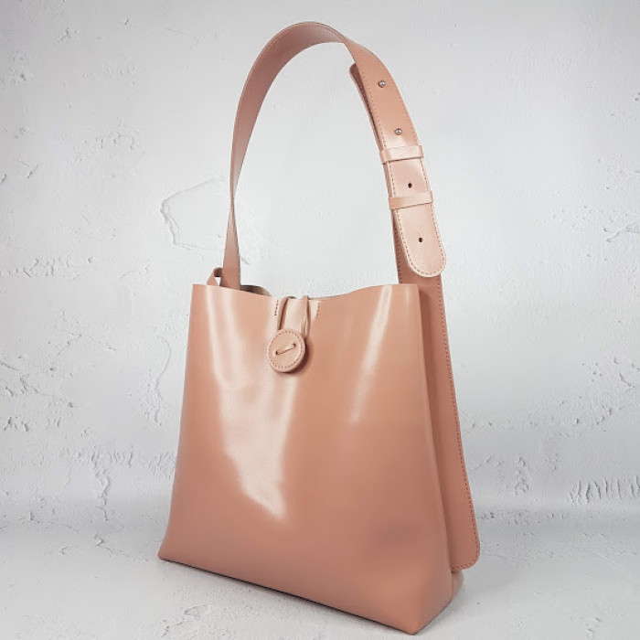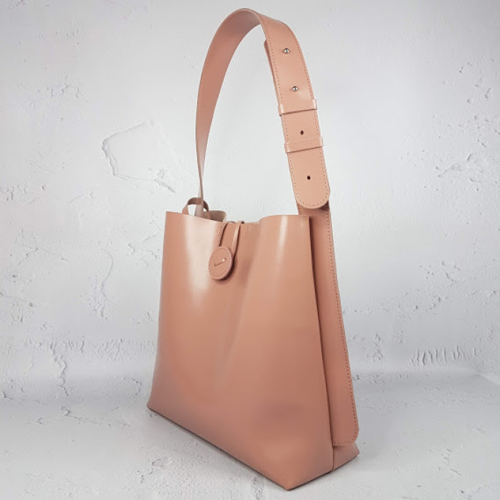 Вместительная сумка из натуральной кожи, внутри специальное отделение - футляр с карманом на молнии, которое крепится к сумке с помощью кожаного ремешка. Застегивается на декоративную пуговицу. Длина ремня регулируется.
