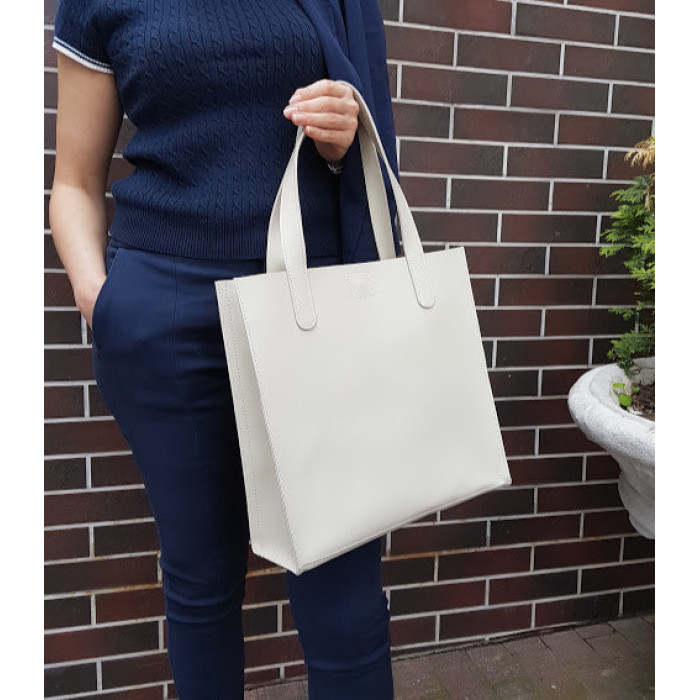Вместительная сумка из натуральной кожи, внутри есть основное отделение с открытым карманом, которое закрывается на молнию. По бокам основного отделения, имеются два открытых кармана. Обратите пожалуйста внимание, что сумочку мы можем сделать в любом цвете нашей палитры, а также в их комбинациях.