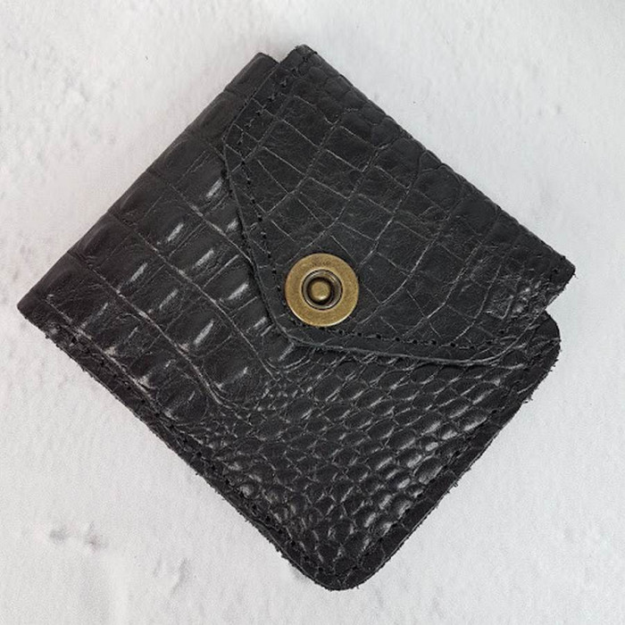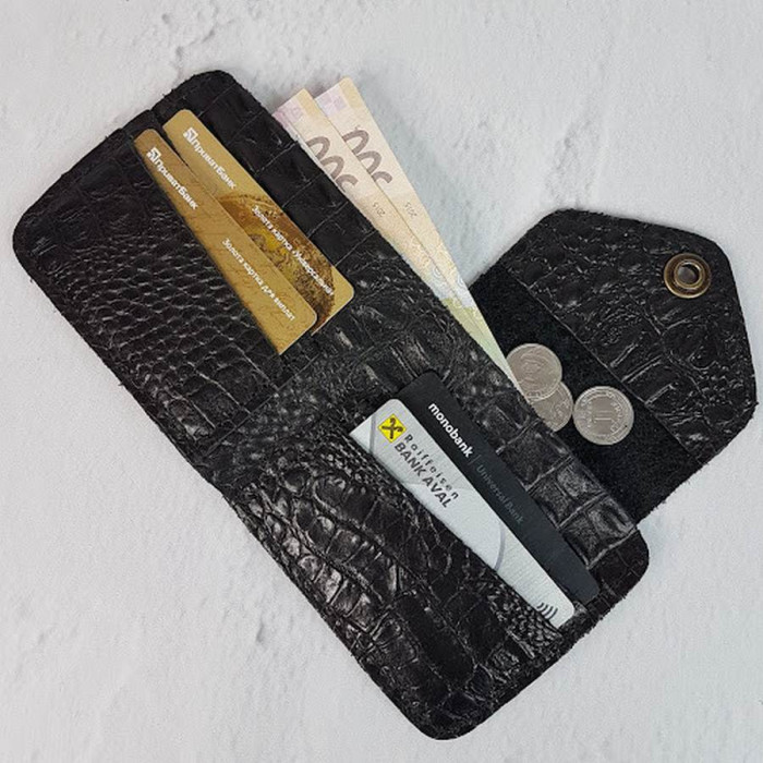 Портмоне натуральная кожа, черная с тиснением под крокодила