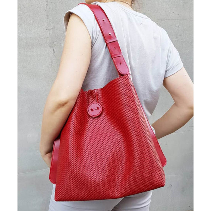 Вместительная сумка из натуральной кожи, внутри специальное отделение - футляр с карманом на молнии, которое крепится к сумке с помощью кожаного ремешка. Застегивается на декоративную пуговицу. Длина ремня регулируется.