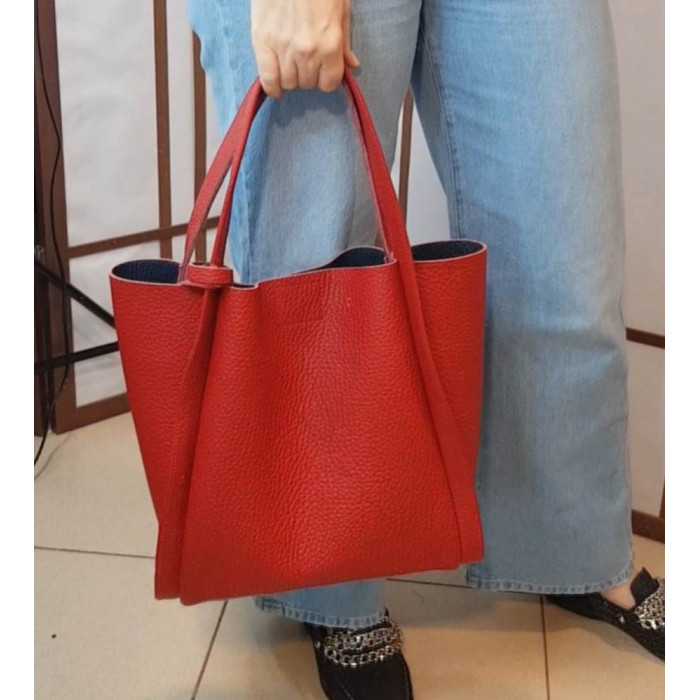 Вместительная сумка из натуральной кожи, внутри специальное отделение - футляр, которое крепится к ручке сумки с помощью кожаного ремешка. Возможно изготовить сумку на молнии. Ручки сумки можем удлинить по Вашему желанию. Застегивается на скрытый магнит.