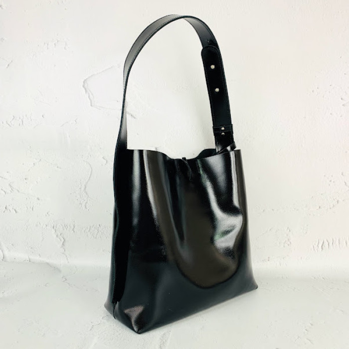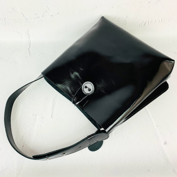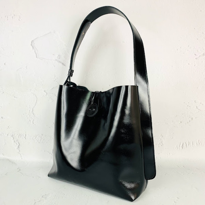 Вместительная сумка из натуральной кожи, внутри специальное отделение - футляр с карманом на молнии, которое крепится к сумке с помощью кожаного ремешка. Застегивается на декоративную пуговицу. Длина ремня регулируется.