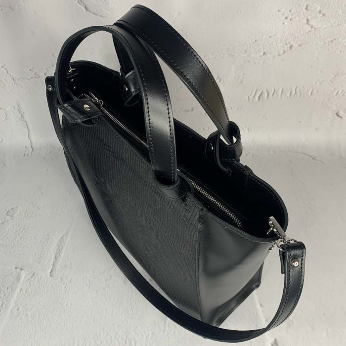 Сумка женская "ПРАГМА" изготовлена из качественной натуральной кожи. Сумочка с оригинальными ручками, которые мы можем по надобности удлинить. Внутри имеются два открытых кармана (дополнительно можем сделать карман на молнии). Закрывается на молнию, имеет длинный плечевой ремень, который крепится на карабинах.