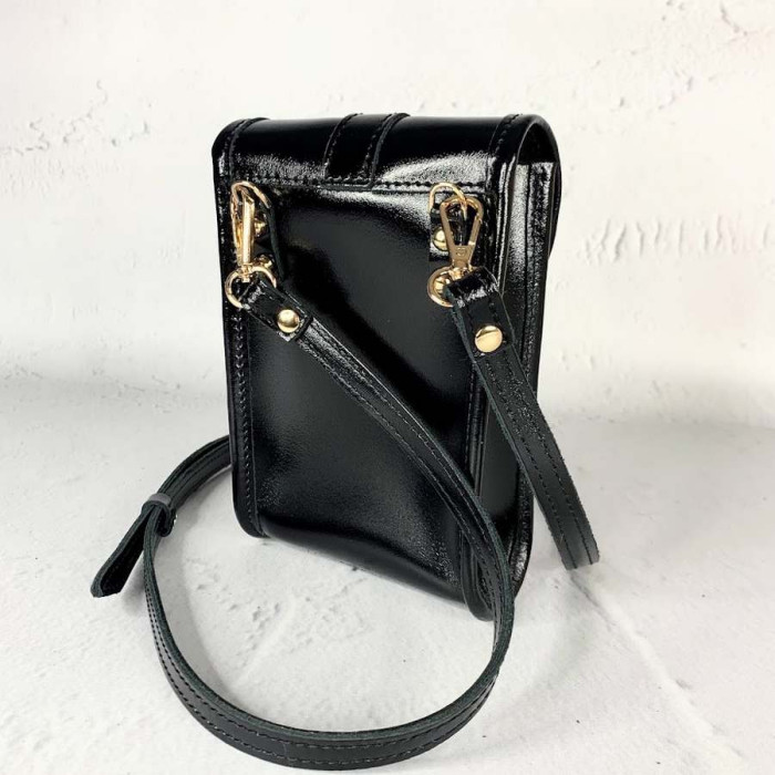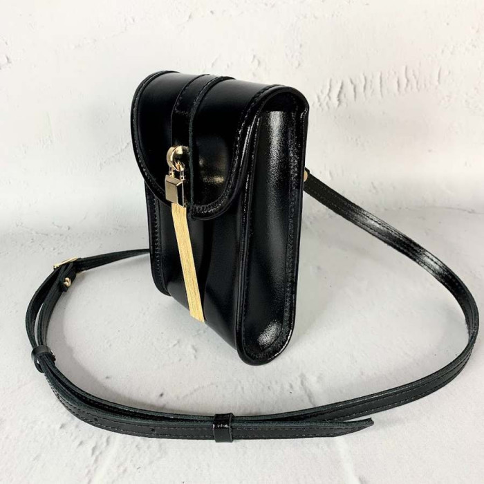 Небольшая, но очень вместительная сумка из натуральной кожи через плечо. Имеет отдельный отдел для телефона, карт и основное большое отделение. Длинный ремень регулируется 110–130 см. Закрывается на магнит. Размер: 18*12*5