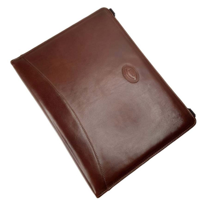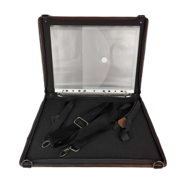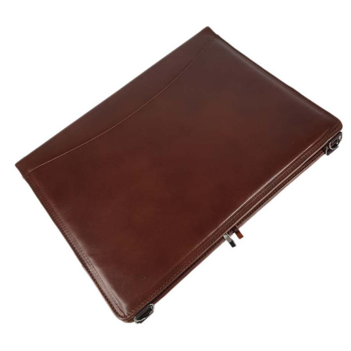 Папка для документов из натуральной кожи – это статусная вещь для делового человека! Внутри имеет кольца для файлов и др., есть крепление для планшета или небольшого ноутбука. Есть также петли для ручек и карман для визиток. В комплект прилагается текстильный регулируемый плечевой ремень