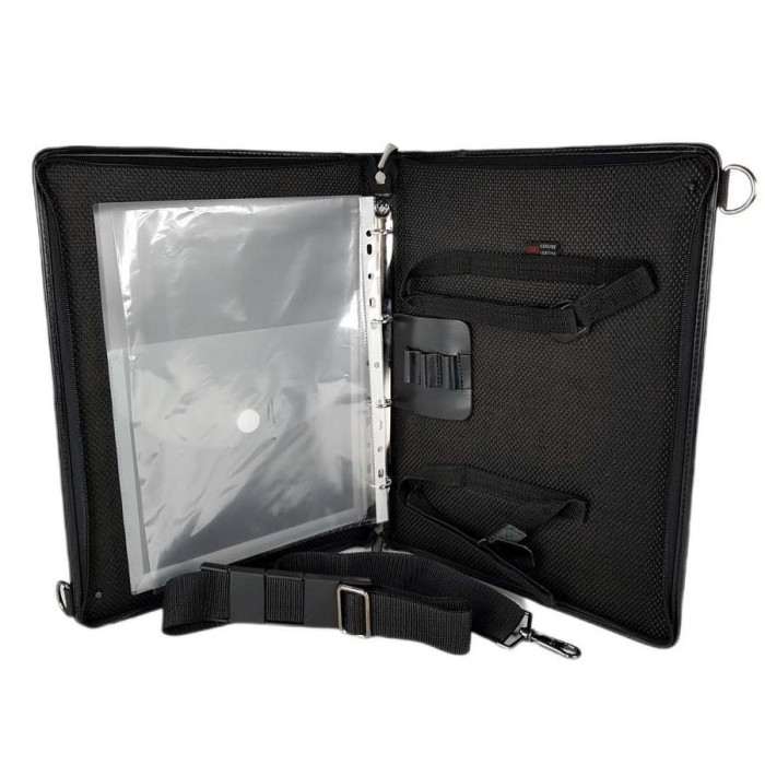 Папка для документов из натуральной кожи – это статусная вещь для делового человека! Внутри имеет кольца для файлов и др., есть крепление для планшета или небольшого ноутбука. Есть также петли для ручек и карман для визиток. В комплект прилагается текстильный регулируемый плечевой ремень