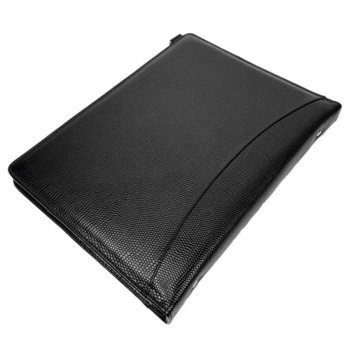 Папка с кольцами для документов, тиснение рептилия, цвет черный, натуральная кожа