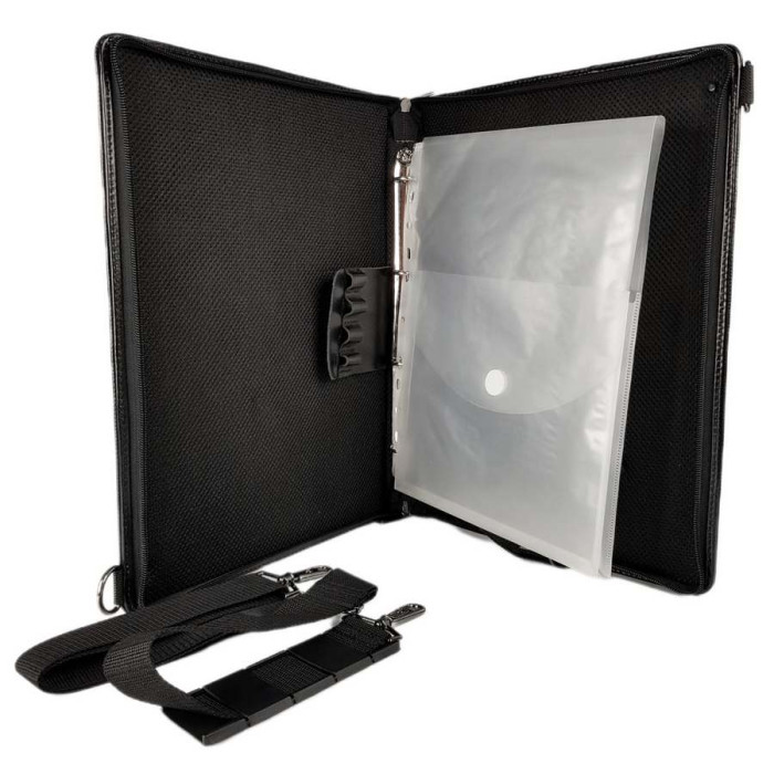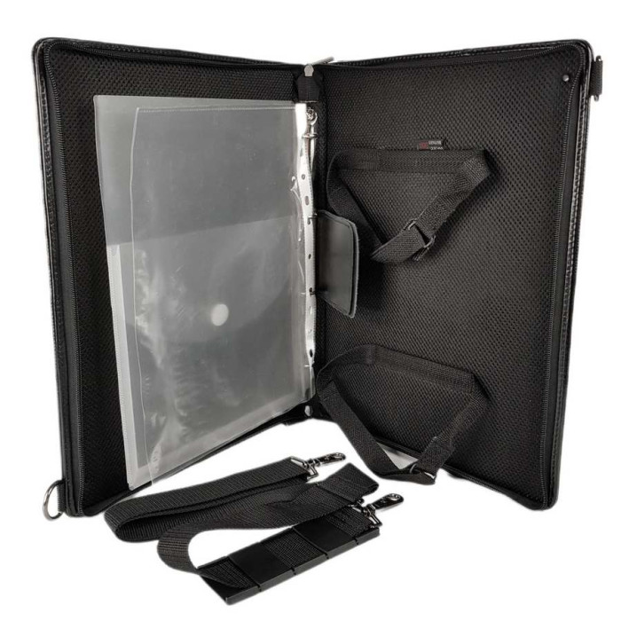Папка для документов из натуральной кожи – это статусная вещь для делового человека! Внутри имеет кольца для файлов и др., есть крепление для планшета или небольшого ноутбука. Есть также петли для ручек и карман для визиток. В комплект прилагается текстильный регулируемый плечевой ремень