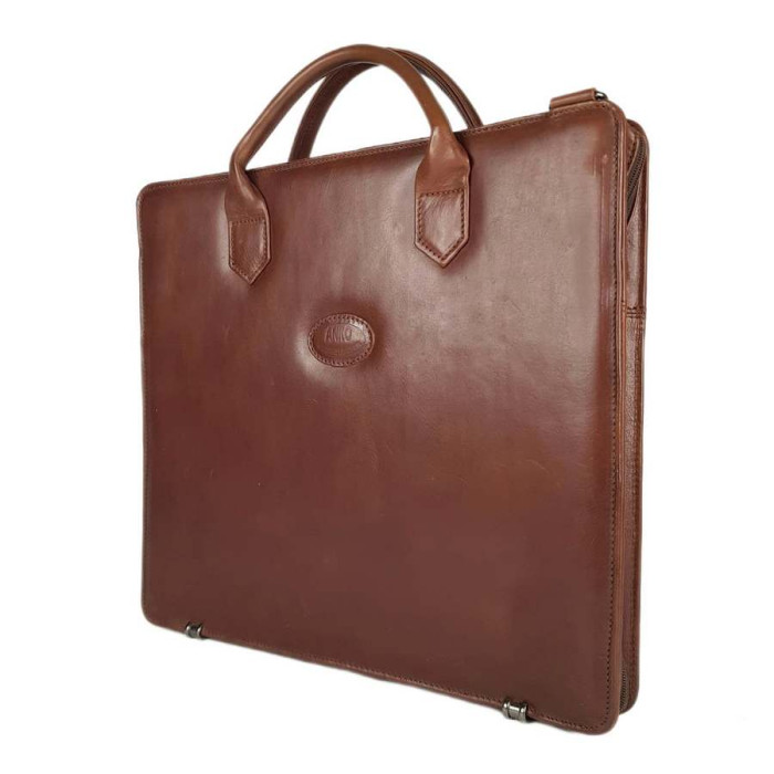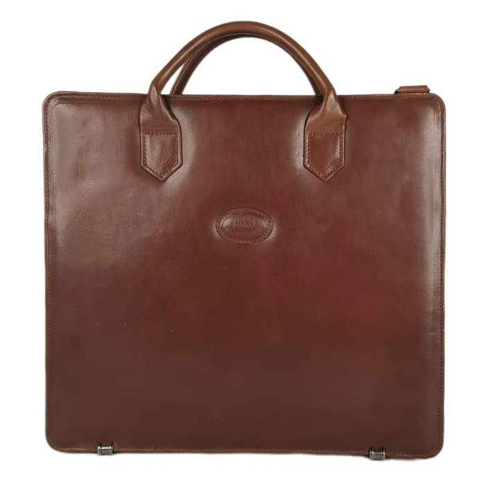 Папка с ручками для документов, натуральная кожа, цвет коричневый,гладкая